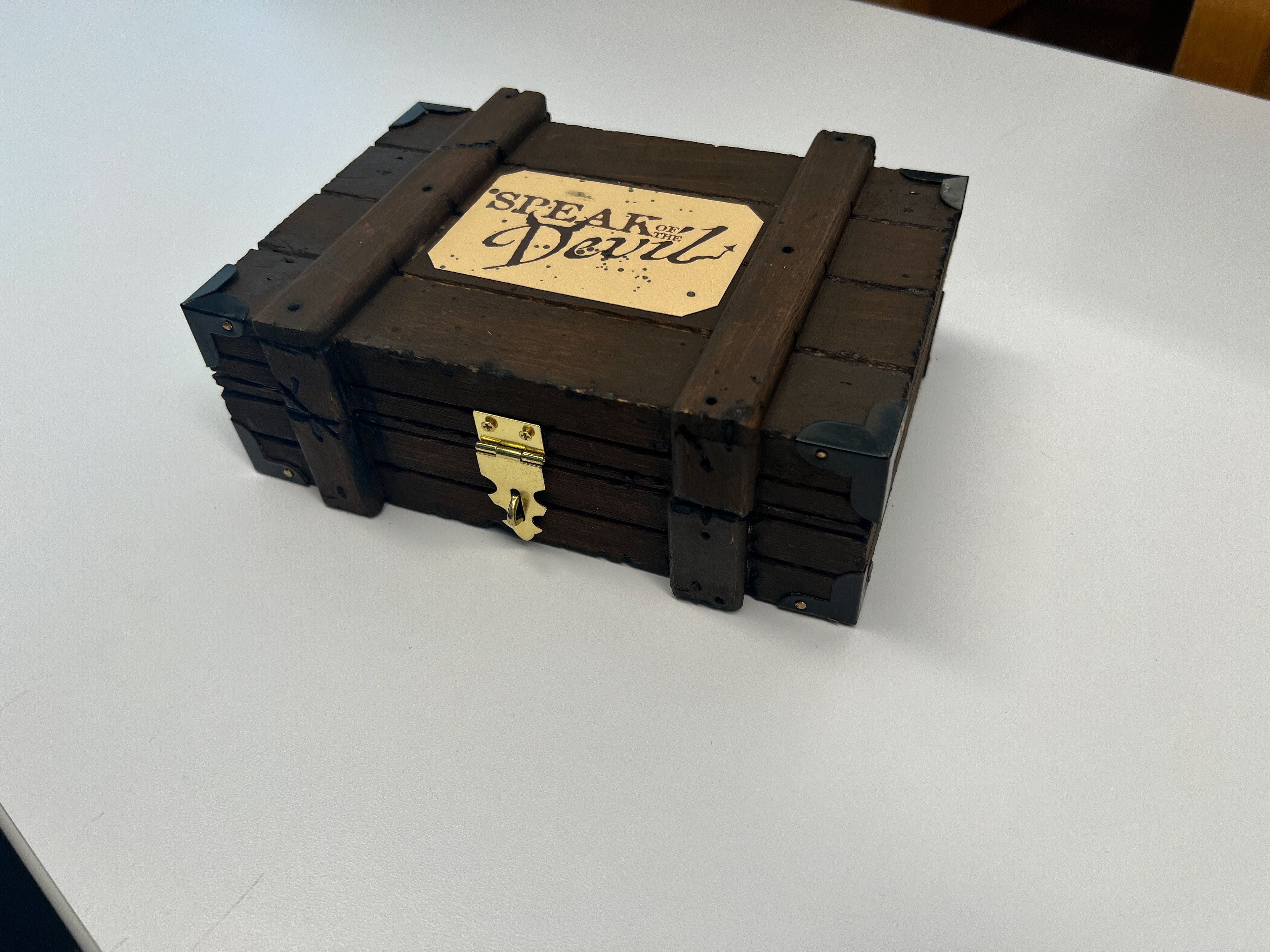 The idiom today is seen as light-hearted and does not carry the same weight as it did in the past. The full saying is “Speak of the devil, and he shall appear” however in order to achieve the concept of yourself as the devil, the saying changed to “speak of the devil, and they shall appear” so it would not be limited to a single gender. Leaning into the historical design aspects of wooden boxes, hand lettered script, and stamped fonts allowed for a vintage feel. Stylizing the type to make it more metaphorical created a cartoonish yet interesting visual.